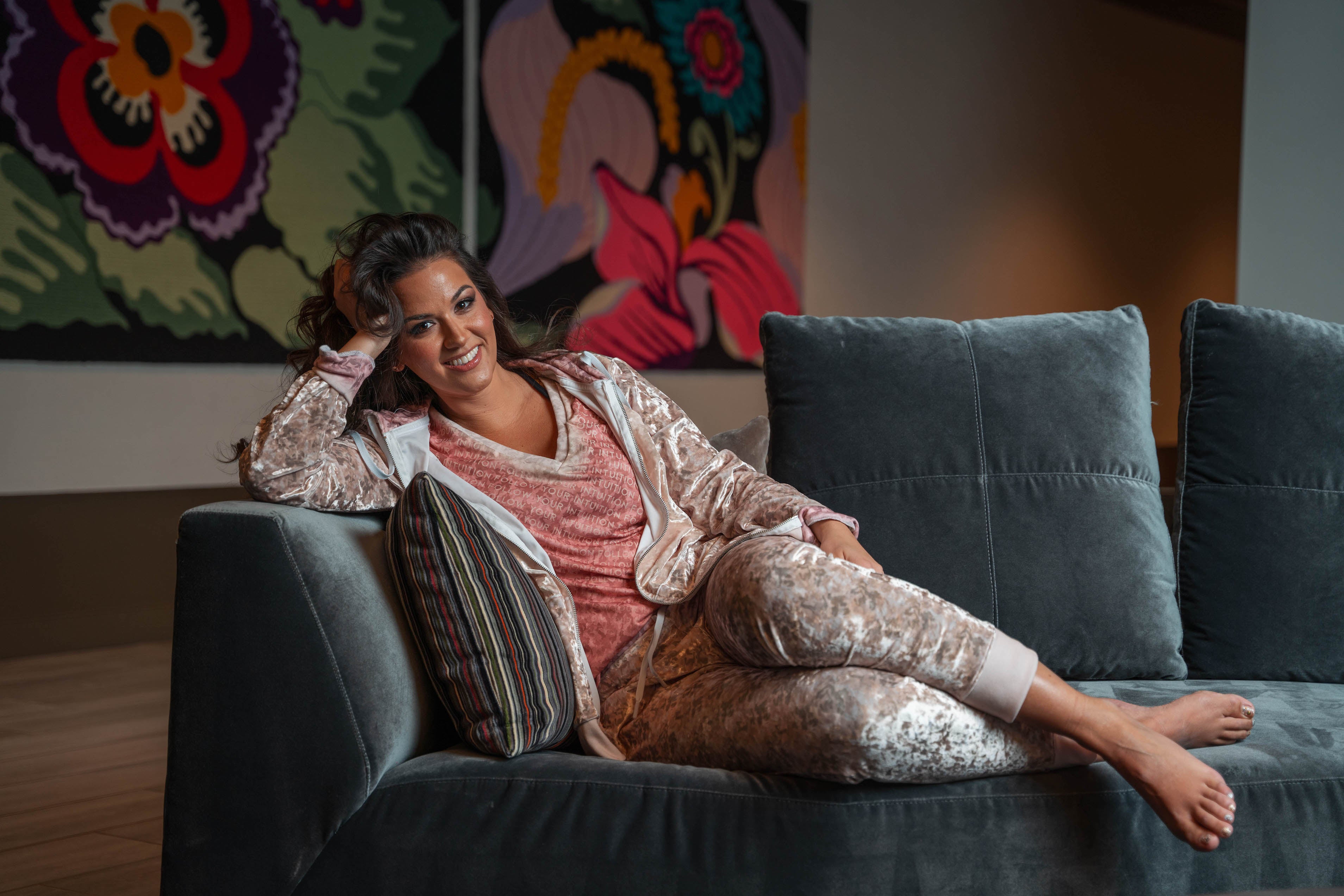 "Follow Your Intuition" Velvet Crew Neck - Champagne Camo